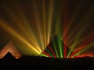 were built, while watching the amazing multicolored laser-illuminated pyramids and the
